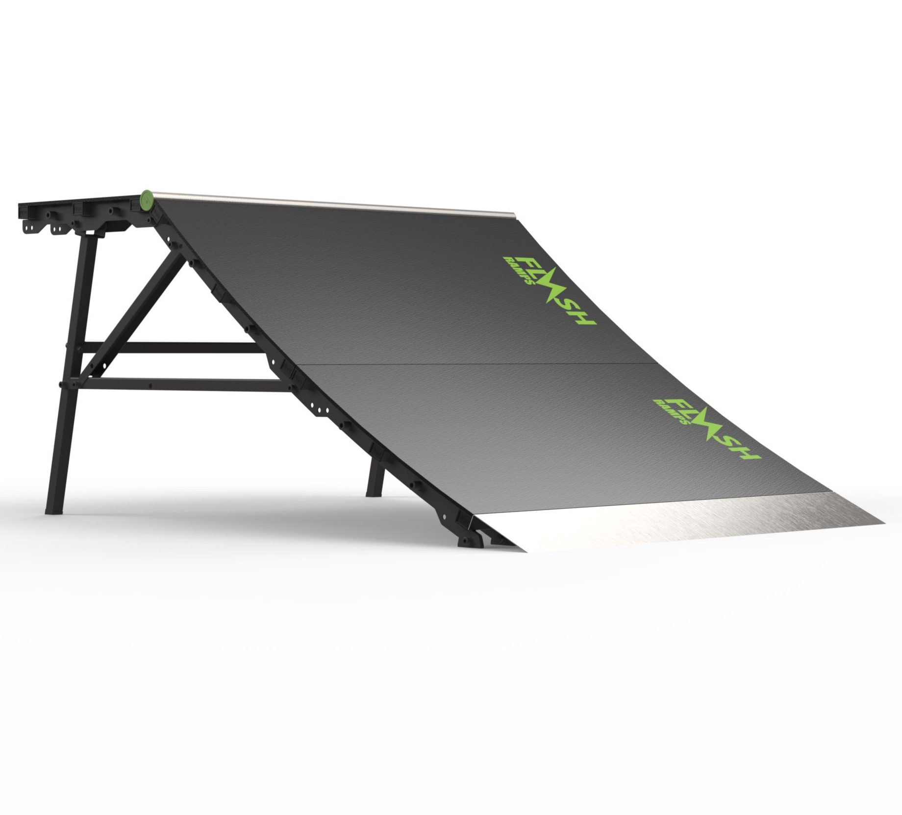 Descubre la rampa quarter pipe de FLASHRAMPS, diseñada para ofrecer máxima resistencia y portabilidad. Ideal para skaters, bikers y riders de scooter, esta rampa es hasta 10 veces más duradera que las de madera gracias a su superficie de alto rendimiento y estructura reforzada.